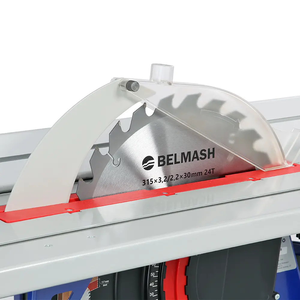 Пильный узел станка рассчитан на установку дисков диаметром 315 мм, что позволяет распускать заготовки до 117 мм высотой. Столы (пильный и строгальные) при этом образуют единую рабочую достаточно большую поверхность. Настройка высоты пропила происходит за счет изменения положения режущего инструмента. Кроме пильных дисков можно устанавливать дисковые фрезы диаметром 125 мм, шириной до 10 мм.