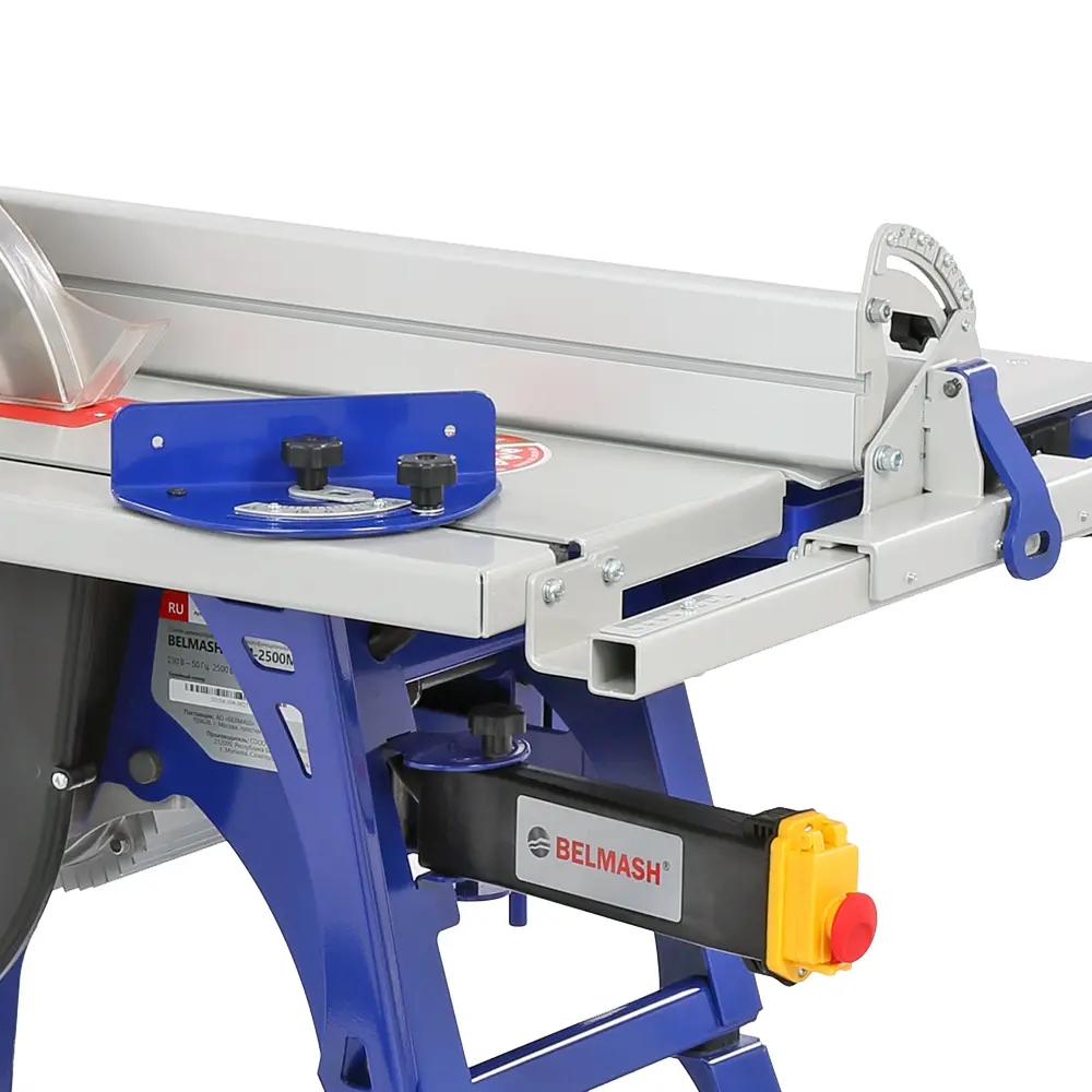 Для точного позиционирования заготовки при распиловке станок имеет угловой упор. Он устанавливается в специальный паз на пильном столе.