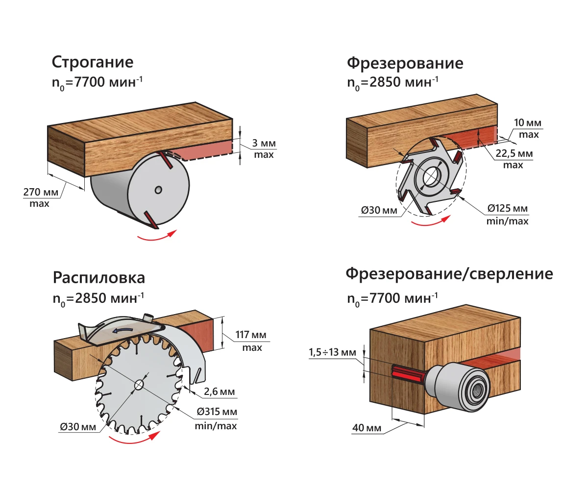 | Диапазон углов строгания с помощью параллельного упора | 0-45 ° |