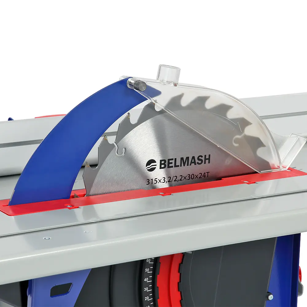 Пильный узел станка рассчитан на установку дисков диаметром 315 мм, что позволяет распускать заготовки до 117 мм высотой. Столы (пильный и строгальные) при этом образуют единую рабочую достаточно большую поверхность. Настройка высоты пропила происходит за счет изменения положения режущего инструмента. Кроме пильных дисков можно устанавливать дисковые фрезы диаметром 125 мм, шириной до 10 мм.