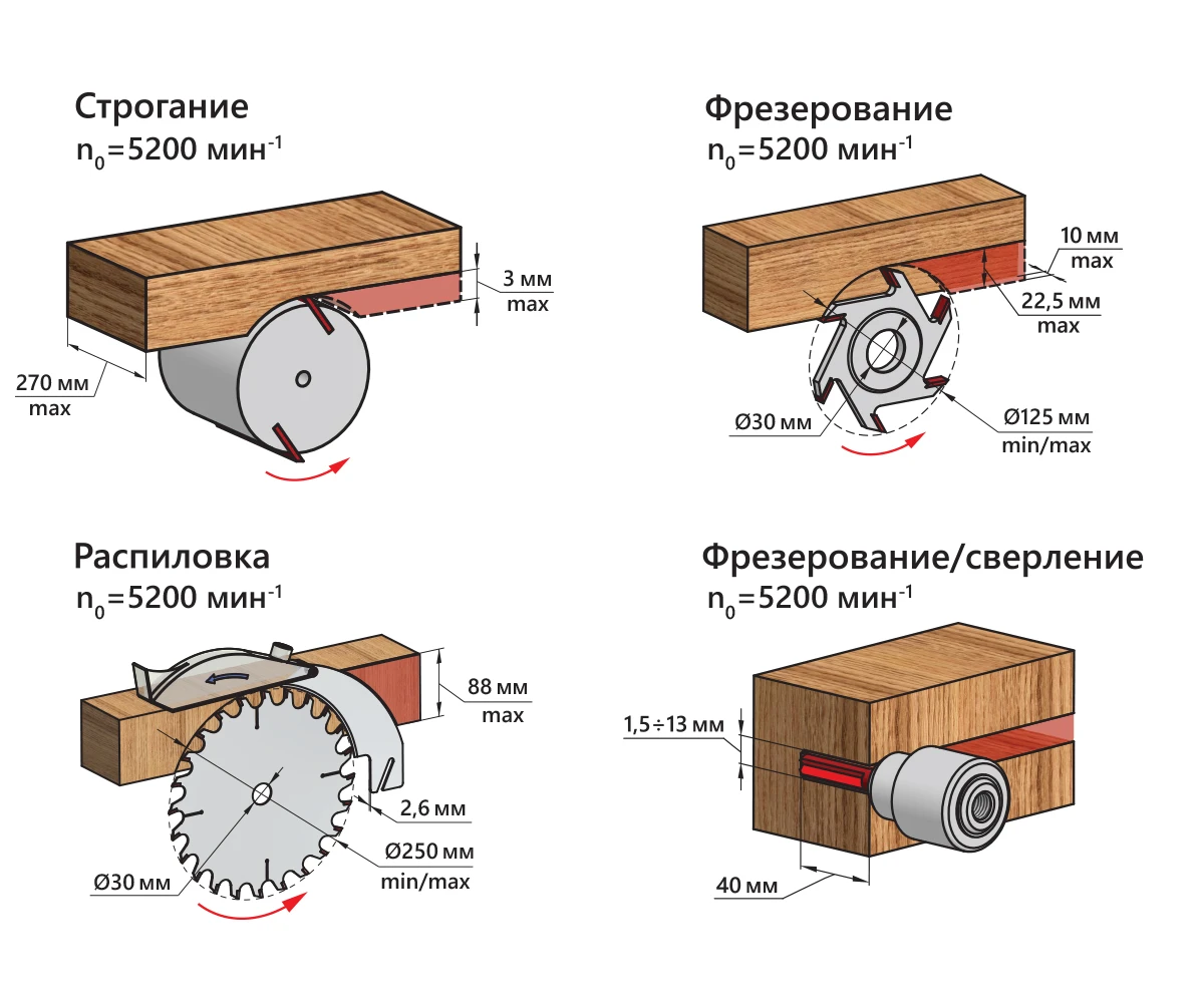 | Диапазон углов строгания с помощью параллельного упора | 0-45 ° |