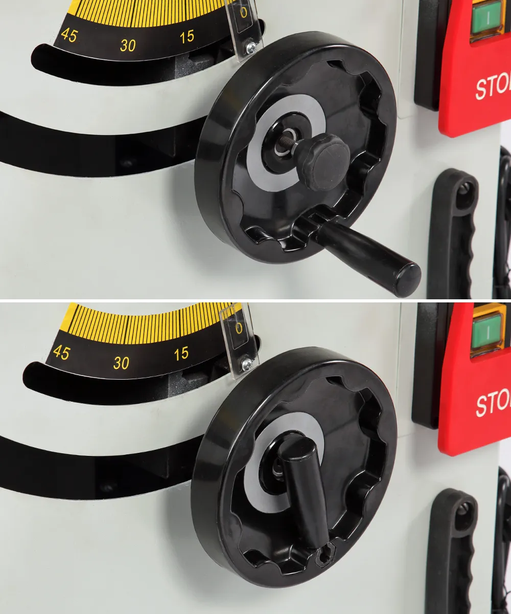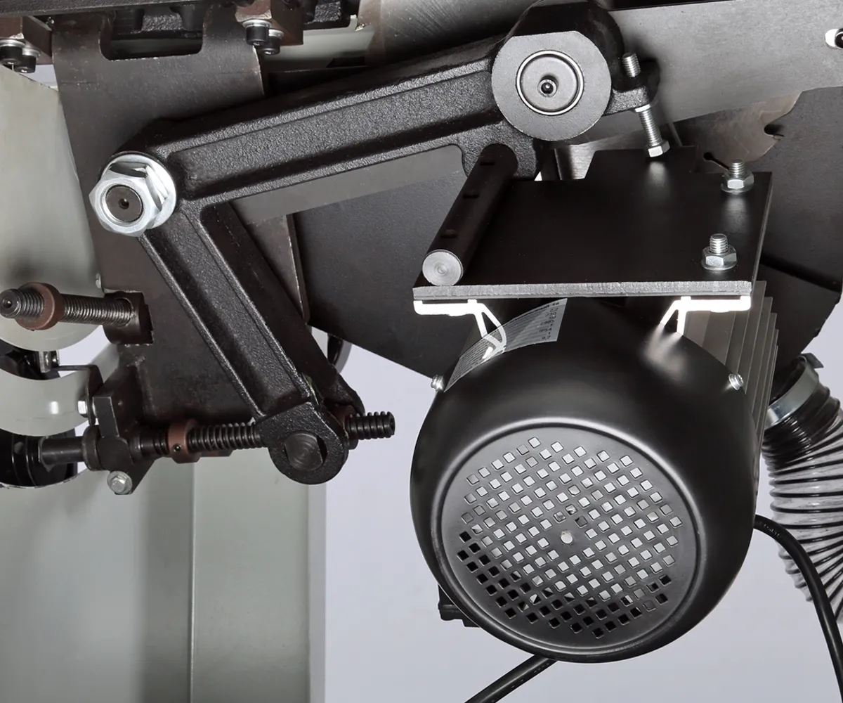 Станок оснащен основным чугунным столом, одним дополнительным столом из листовой стали, подвижным столом из алюминиевого профиля. Основной и подвижный стол имеют по одному пазу для установки угловых упоров или дополнительных приспособлений.